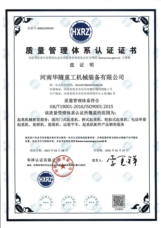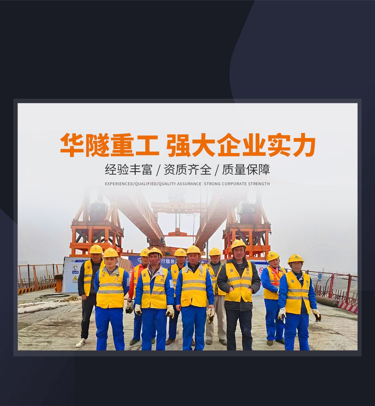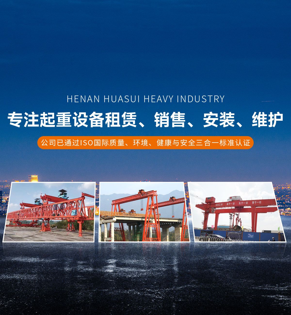 河南華隧重工機(jī)械裝備有限公司主要從事通用門式起重機(jī)、橋式起重機(jī)、電動(dòng)單梁起重機(jī),輪胎式起重機(jī)、架橋機(jī)、提梁機(jī)、遠(yuǎn)梁平車、鋼絲繩電動(dòng)萌蘆、卷揚(yáng)機(jī)、起重配件制造、銷售:起重機(jī)械租賃、安裝和維修,起重設(shè)備園收,機(jī)械設(shè)備維修,鋼結(jié)構(gòu)工程承包,橋梁工程及技術(shù)咨淘服務(wù),銷售五金制品、機(jī)電設(shè)備:建設(shè)工程監(jiān)理,建設(shè)工程設(shè)計(jì),各類工程建設(shè)活動(dòng),建筑勞務(wù)分包,建筑物折除作業(yè),施工作業(yè),工程管理服務(wù),土石方工程施工,裝如發(fā)運(yùn)。  公司已通過IS0國際質(zhì)量、環(huán)境、健康與安全三合一標(biāo)準(zhǔn)認(rèn)證,特種設(shè)備制造許可證和特種設(shè)備安裝改造維修許可證。擁有完熟的質(zhì)量管理體系。嚴(yán)格的管理制度,強(qiáng)大的生產(chǎn)能力和先進(jìn)的檢測(cè)手段,在保證產(chǎn)品質(zhì)量的同時(shí),也具備了極強(qiáng)的市場競爭力。  公司堅(jiān)持科技創(chuàng)新為理念,產(chǎn)品質(zhì)量為核心,注重信譽(yù),建立了減信可靠、快捷、思速。便利周到的售后服務(wù)網(wǎng)絡(luò)。  我們擁有的技術(shù)專家和技術(shù)服務(wù)隊(duì)伍為客戶提供充善的售前技術(shù)支持和全天候的售后服務(wù)體系,讓您無后顧之憂,享受一站式的超值服務(wù)。  “華隧重工,伴您成功“是華隧重工永遠(yuǎn)的宗指,真被的希望與各界朋友攜手并進(jìn)。共創(chuàng)輝準(zhǔn)!